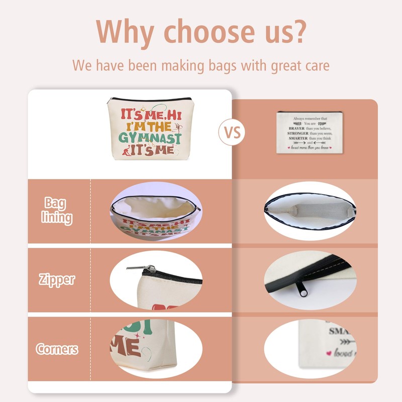 - ๐๐๐ค๐๐ฎ๐ฉ ๐๐๐ ๐๐จ๐ฅ๐จ๐ซ: Gymnast themed 'HI I'M THE GYMNAST IT's ME' makeup bag looks exactly as in the picture, with double-sided color graphics that are well-made and colorful