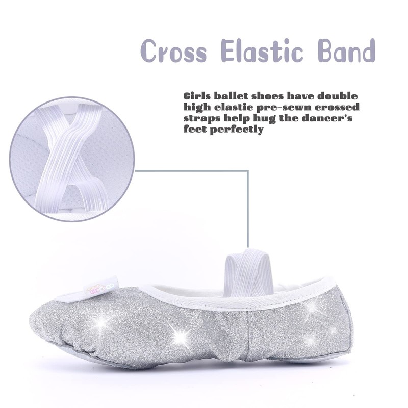 Girls Ballet Shoes Glitter Split-Sole Dance Slippers Toddler Kid Practice Shoes Flats Soft Lightweight with Elastic Laces for Performance Gymnastics Yoga Glitter Silver 11.5