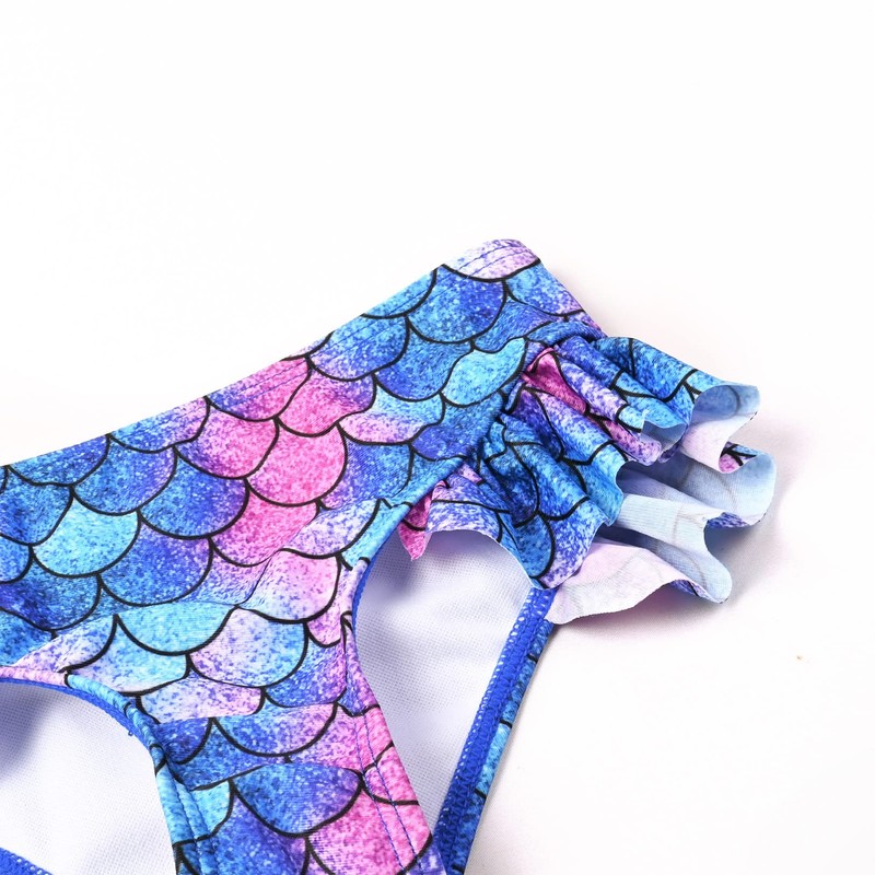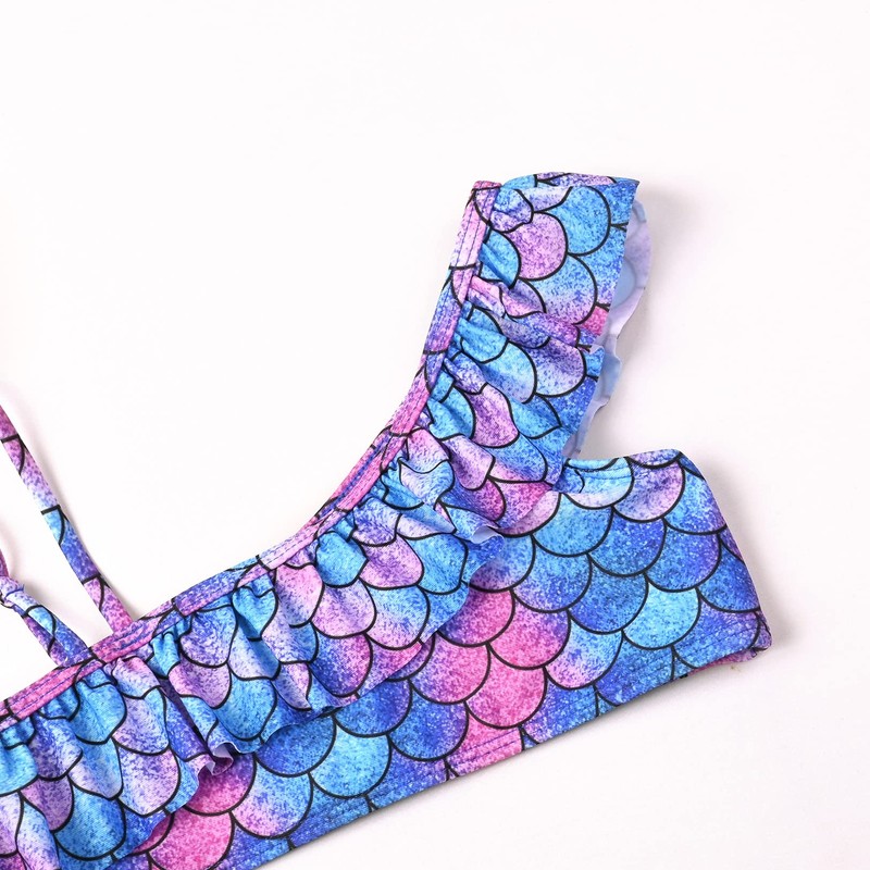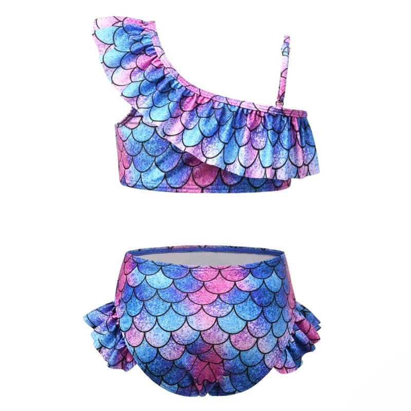 Girls Bathing Suits One Shoulder Bikini Blue Mermaid Swimsuits Beach Clothes Size 8 9