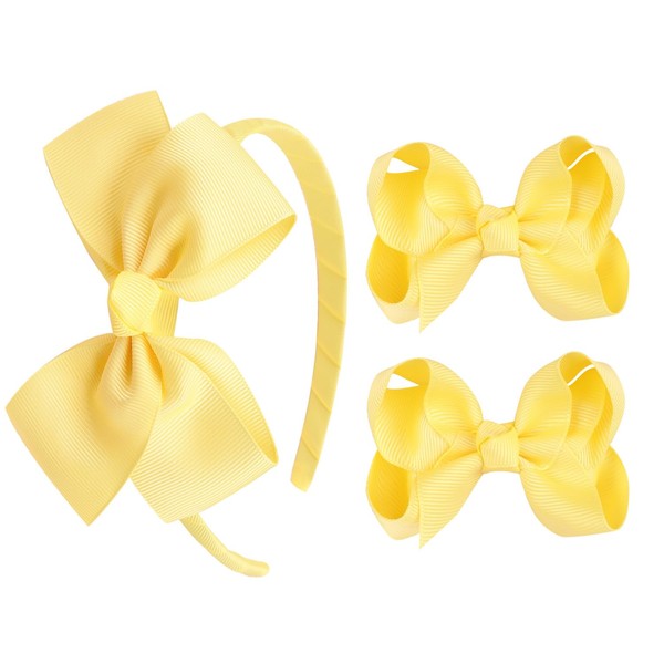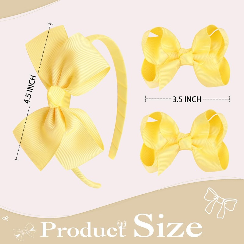 • Complete Hair Accessory Set for Girls: This set includes a high-quality grosgrain bow headband and two 3.5-inch bow hair clips, providing everything your little one needs for a stylish look. Perfect for any occasion, from daily wear to special events!