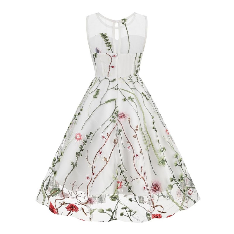 Kids Girls 1950s Retro Dress Sleeveless Floral Embroidery Mesh Swing Dress Cocktail Dress