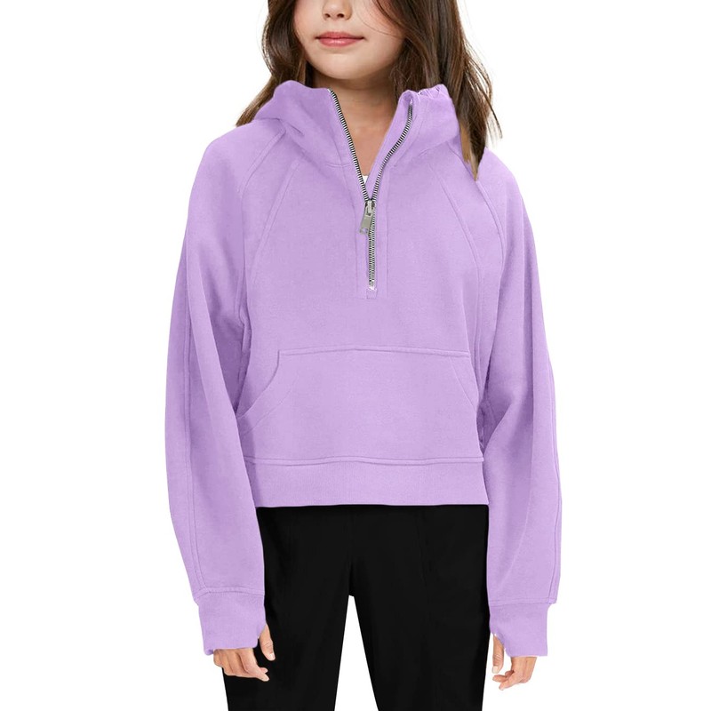 Girls' Hoodies Sweatshirts Half Zipper Pullover Crop Tops for Teen Girls Long Sleeve Sweater Thumb Hole Purple