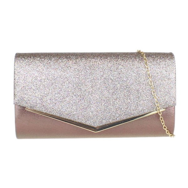 Girly Handbags Womens Glitter Flap Clutch Bag Bronze