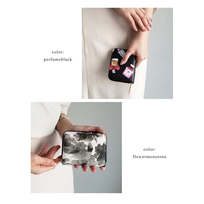 Giselle Wallet Mini Wallet, Card Case, Prevents Bills from Breaking, Large Capacity, Prevents Skimming, Size L: Flower mono/Flower monotone