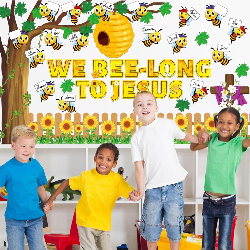 - Fun religious design: These bee Jesus religious bulletin board set combine the fun religious elements with bee, tree and flower patterns which is the novel design for your classroom decor.