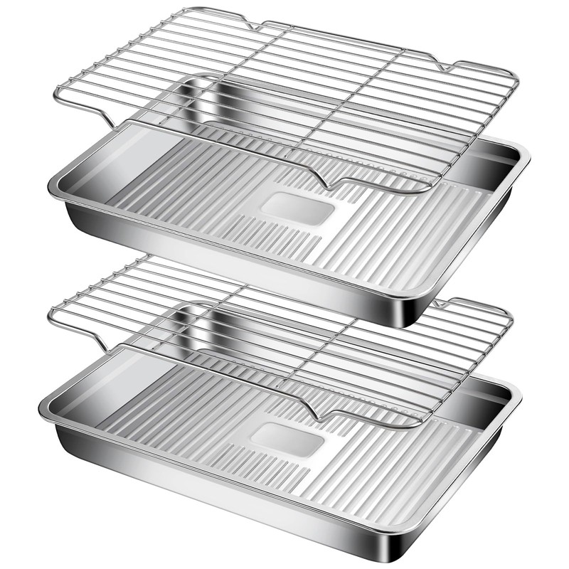 GIUOIDUO Stainless Steel Baking Tray with Grill,(3 trays and 3 grills), for Baking, Cooling Cookies or Bacons, Ovens and Dishwashers Safe, Heat Evenly, Durable Cookie sheet