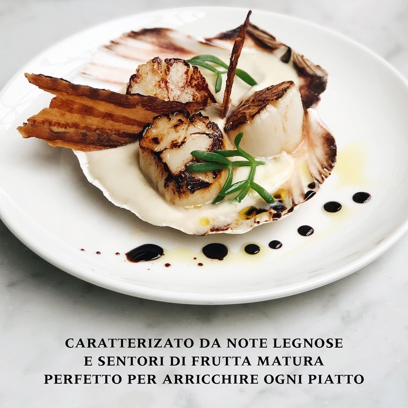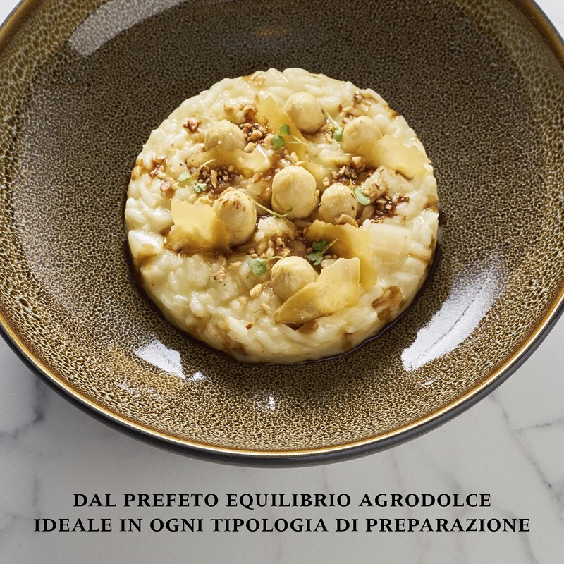 - FLAVORFUL BALSAMIC VINEGAR - The flavor profile of this Gran Deposito Balsamic Vinegar brings notes of plum jam, red fruit, honey, and vanilla. This gourmet balsamic is a deep brown color with a glossy, velvety smooth texture. Complex, aromatic, and acidic undertones make this balsamic wine vinegar from Italy great with fresh pasta, soft cheese, fresh fruit, or to create the perfect twist to upgrade a negroni or other cocktails.