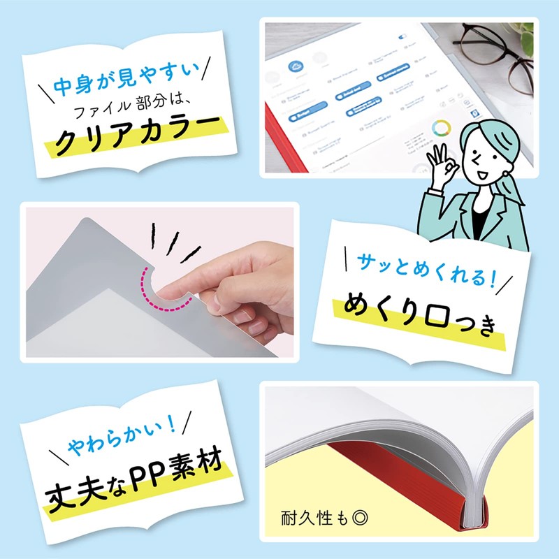 The file section is clear so you can easily see your documents and the semicircular flap makes it easy to roll up. Flexible PP material for durability.