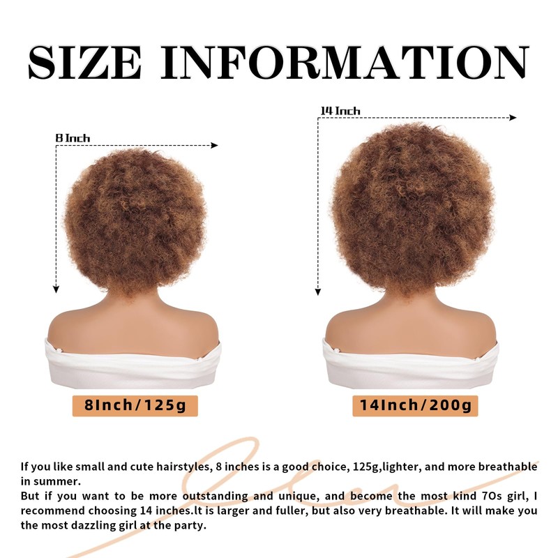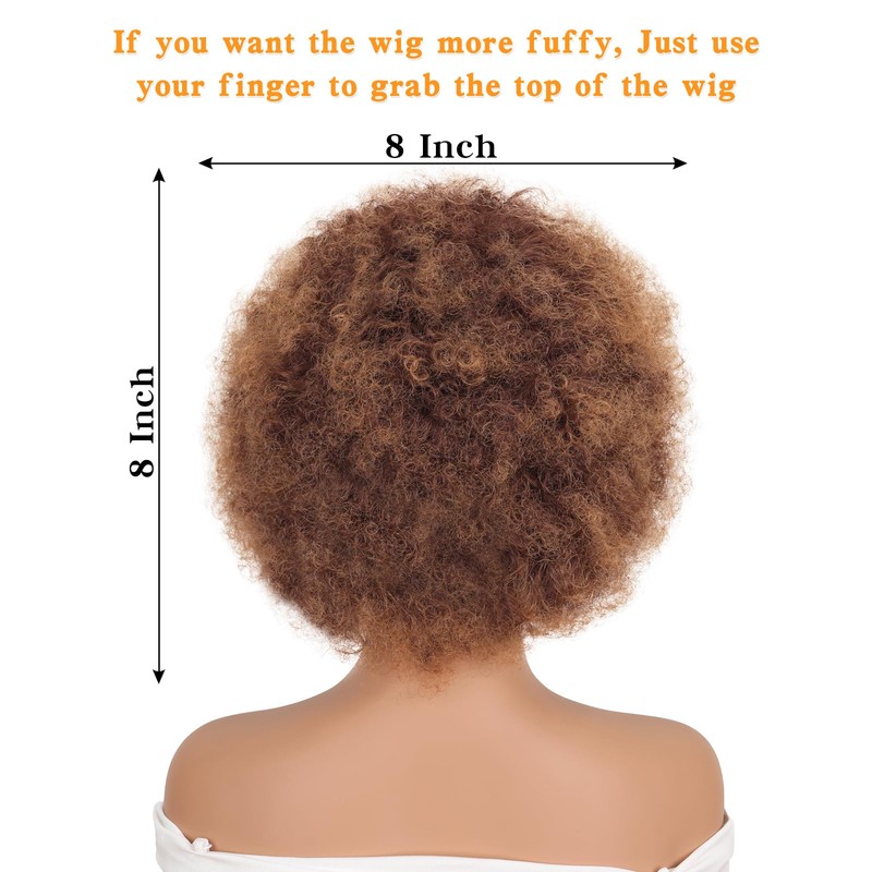 GKtineke Short Afro Wig 8 Inch Afro Wigs for Black Women 70s Kinky Curly Wig Fluffy Bouncy Puff Synthetic Hair for Daily and Party (Mixed Brown)
