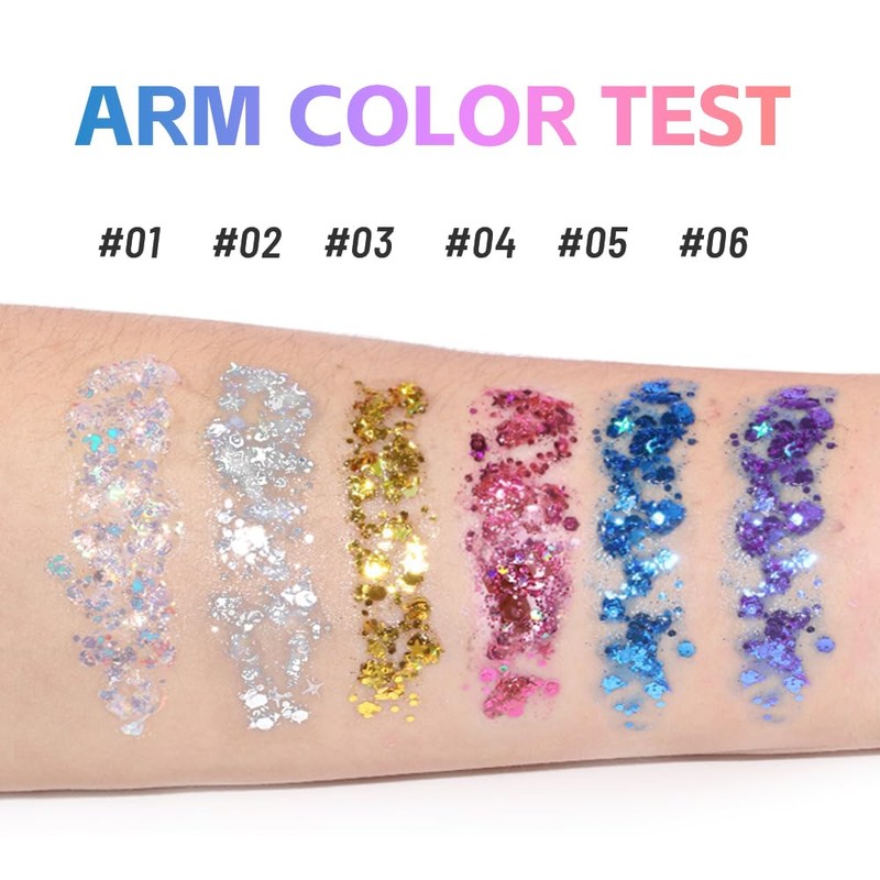 - Multiple uses: use the glitter gel for under eye tears, cheekbone highlights, glitter braids, glitter roots, collarbones, shoulders, etc. It fits most skin types, especially suitable for Halloween, Christmas, Mardi Gras, St. Patrick's Day accessories, as face jewellery and rave accessories for singer concerts, music festival, coachella, wedding, club, party, nightclub celebration, performance, can also be applied sparingly for daily glitter.