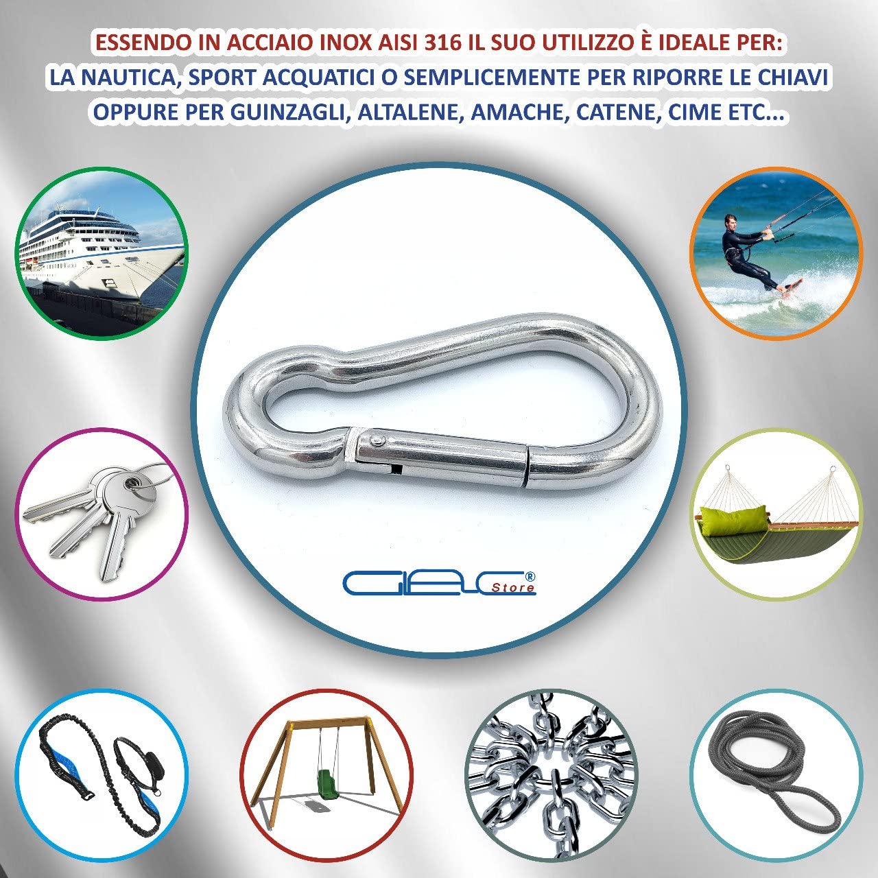 Glac Store® Carabiners Carabiner in AISI 316 stainless steel of 4,5,6,7,8,10,12 mm diameter thickness breaking load from 590 to 2000 kg Multifunctional Nautical Hobby (4, 5mm Capacity 650Kg)