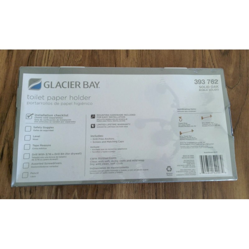 Glacier Bay Solid Oak Toilet Paper Holder 393762 NEW