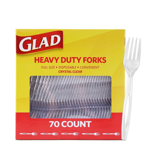 Glad Glad Clear Plastic Forks, Heavy Duty Disposable Cutlery Set, Standard Size, Clear Disposable Fork, Bulk Pack of 70 - Perfect for Parties, Camping, and Everyday Use