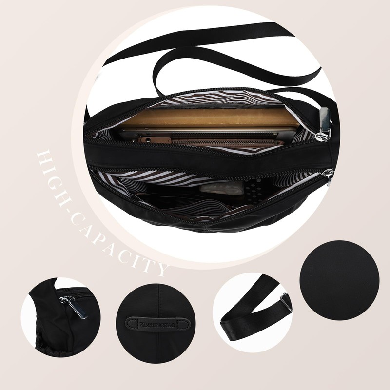 Gladdon Crossbody Bag for Women Fashion Nylon Shoulder Purses Designer Handbags with Adjustable Strap, Black