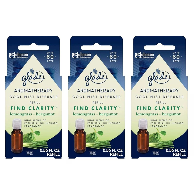 Glade (3 Ct) Glade Aromatherapy Cool Mist Oil Diffuser Refill, Find Clarity Lemongrass