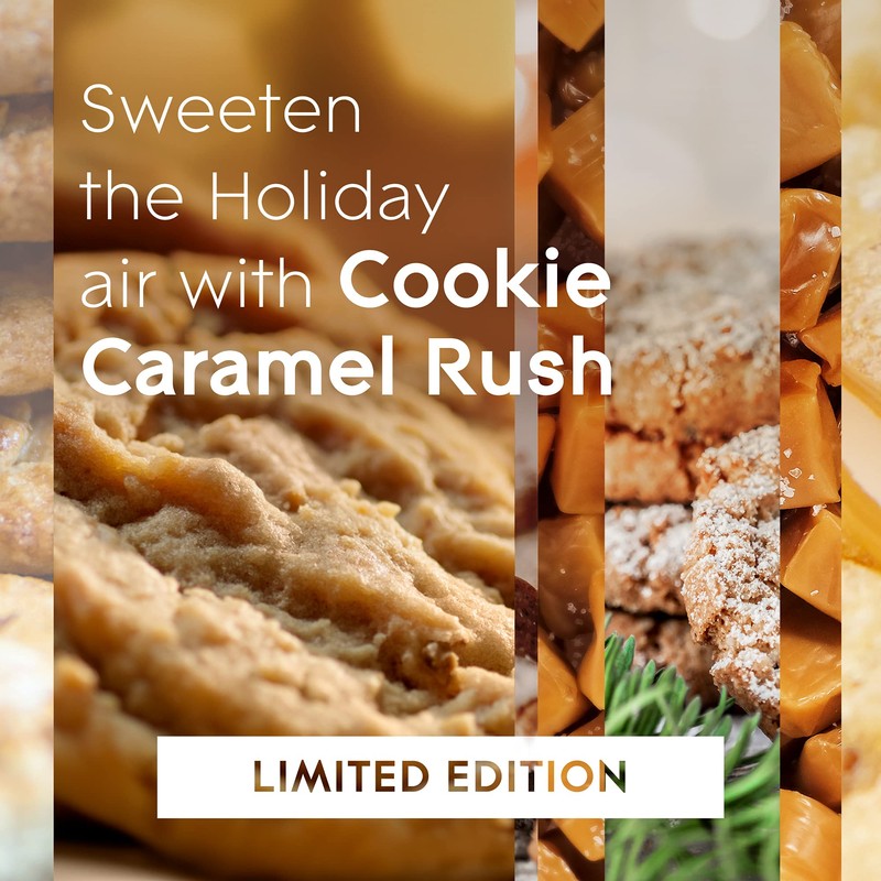 - Sweeten the air with Cookie Caramel Rush, with notes of vanilla cookie and caramel