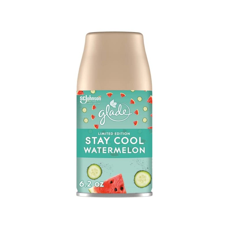 - Refresh your mood and chill out with this Glade spray automatic air freshener and the Stay Cool Watermelon fragrance, with notes of juicy watermelon, cool cucumber and bubbly seltzer