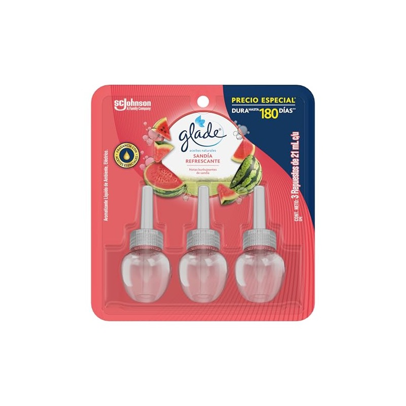 🌟 ⭐ Glade Aromatizante para Hogar, Aroma Sandía Refrescante, Aromatizante Líquido Eléctrico de Ambiente, 3 Repuestos de 21ml ⭐ 🌟