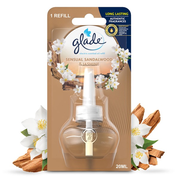 Glade Plug in Air Freshener Refill, Electric Scented Oil Room Air Freshener, Sandalwood & Jasmine, 6 Refills (6 x 20ml)