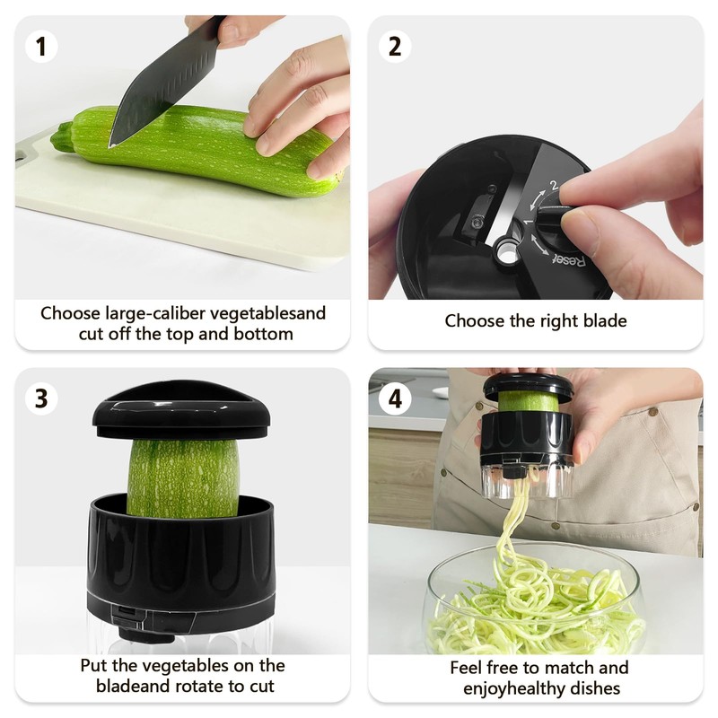 - Multi-Functional Handheld Spiralizer: This veggie spiralizer is more than just a zucchini noodle maker; it can handle a variety of vegetables,allowing you to create healthy, creative dishes with ease. Crafted from premium 420 stainless steel, these blades ensure durability