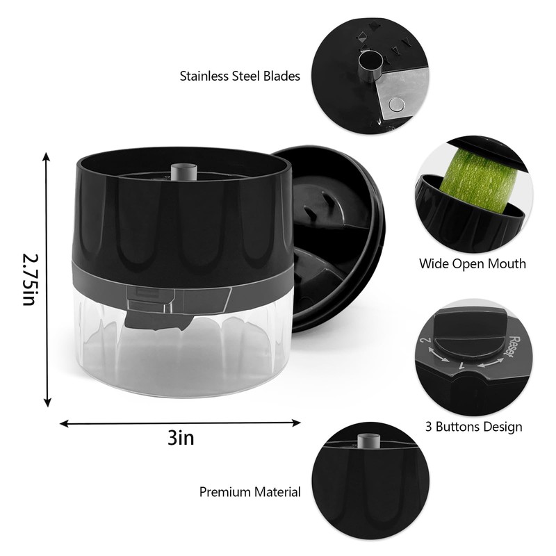 GLADICER Handheld Spiralizer, 3-in-1 Zucchini Spiralizer Noodle Maker, Spiralizer for Veggie Noodles, Perfect for Zucchini, Carrots, & More, Portable Kitchen Tool (Black)