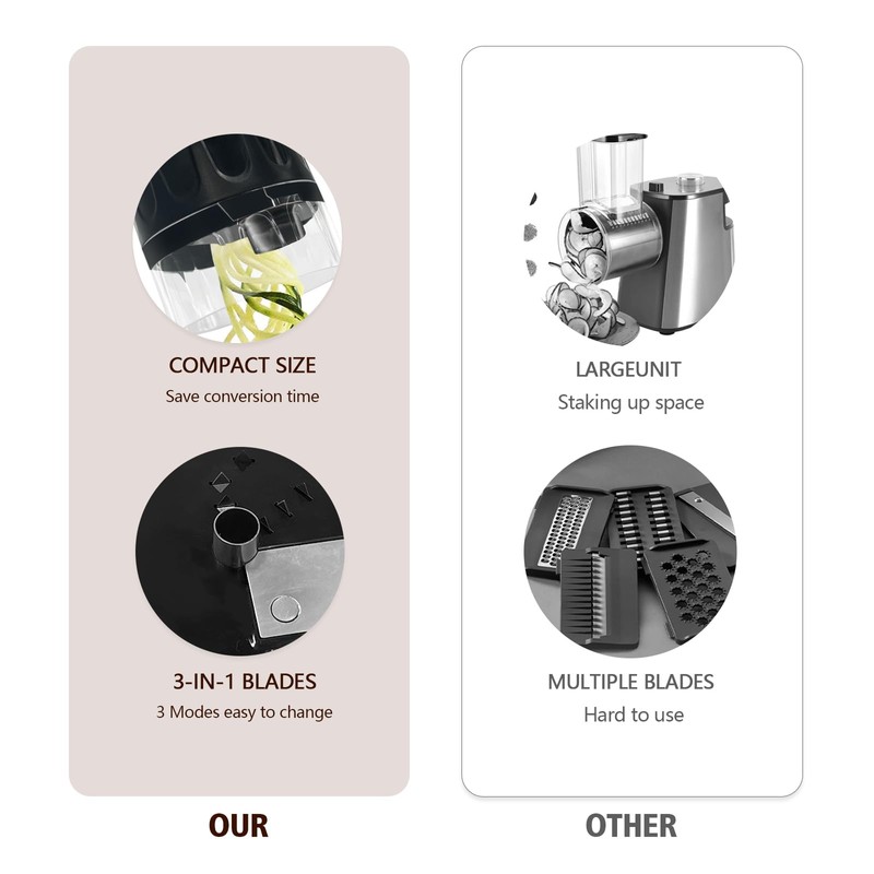 - 3-in-1 Design & Compact Size: The Gladicer zoodle maker offers a versatile 3-in-1 functionality, making it the perfect addition to any kitchen. Measuring just 3 inches by 2.75 inches,compact design ensures easy storage, saving valuable counter space while providing multiple cutting options