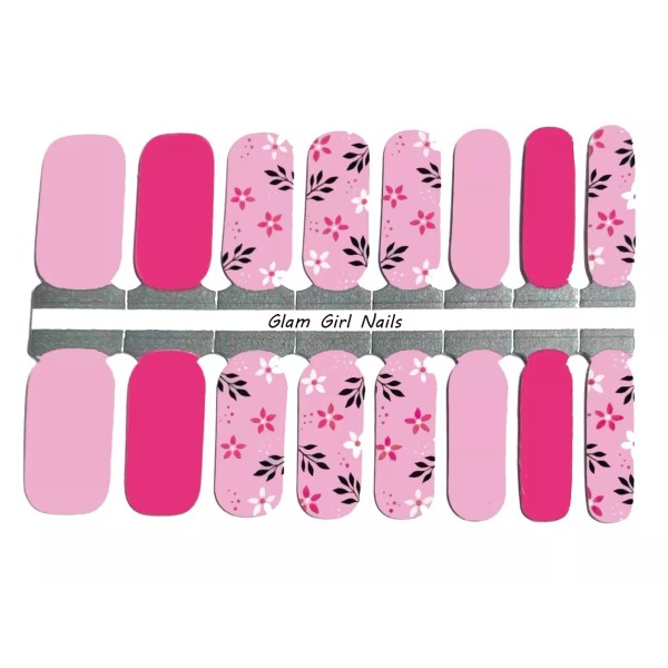 Glam Girl Nails Pink Floral Nail Polish Strips / Nail Wraps / Nail Stickers