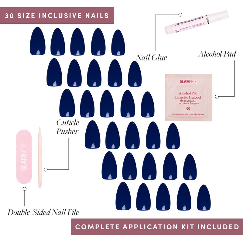 Glamnetic Glamnetic Press On Nails - Midnight Blue | Opaque Dark Navy Blue Short Almond False Nails, Reusable Stick On Fake Nails with Glue | Salon Quality | 15 Sizes - 30 Nail Kit