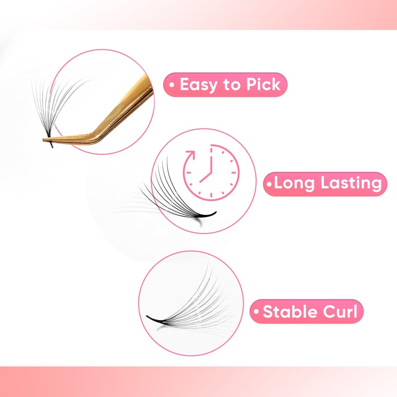 These unique Promades will be your best assistant to create hybrid, light volume, dramatic volume, and mega-volume styles that require fluffy and dense lashes in the least amount of time possible.