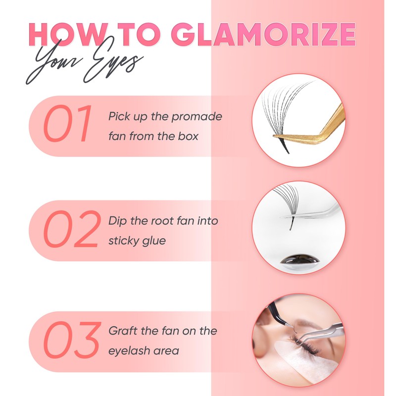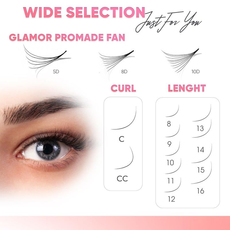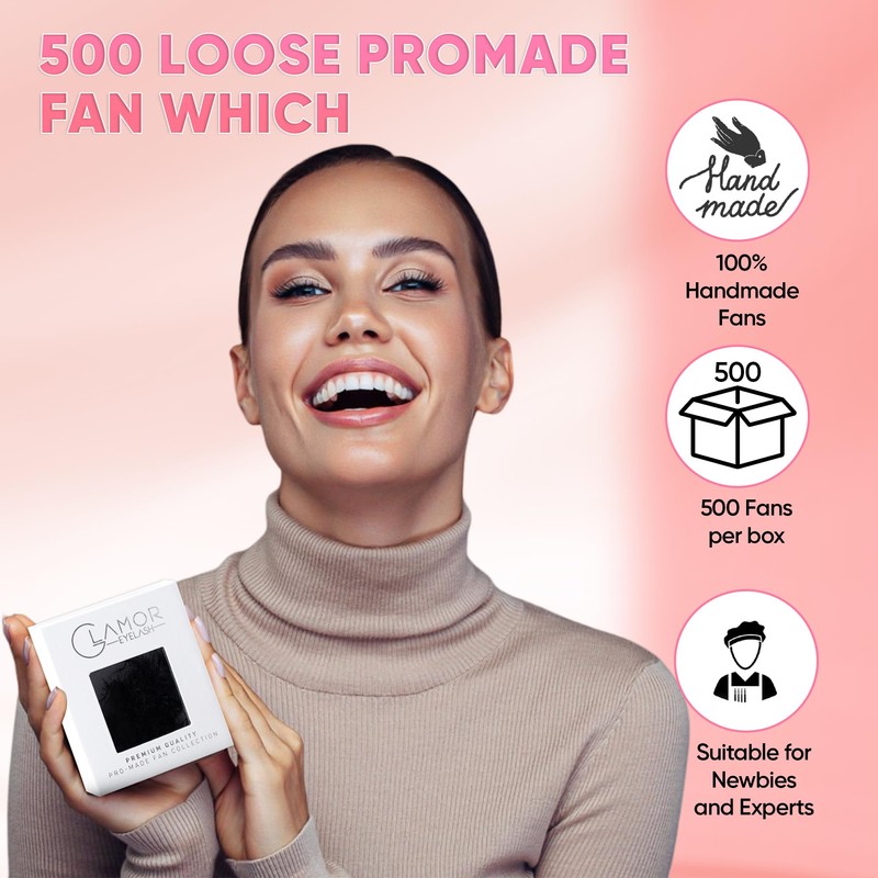 - 💗 A LARGE NUMBER OF PROMADE FANS: Our lash clusters provide you with 500 soft, comfortable, and cost-effective Promade Lashes Natural Look while creating glamorous promade fans for your customers. Glamoreyelash is made entirely by the Glamor meticulous team, so you don't have to be concerned about our high-quality eyelash extension kit.
