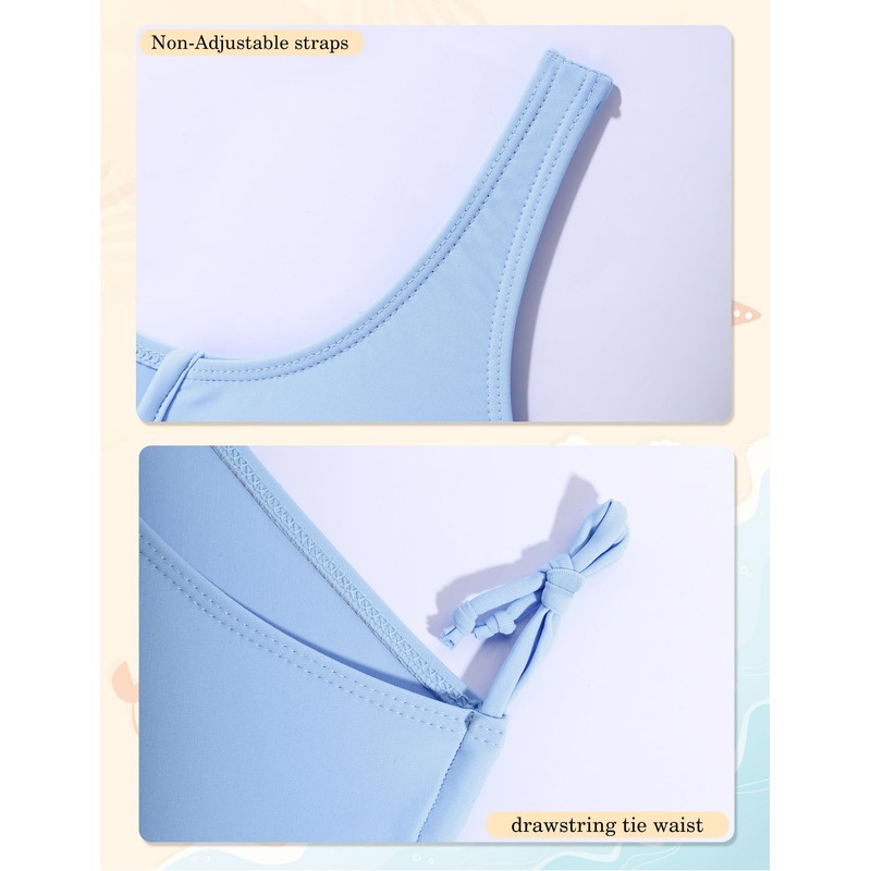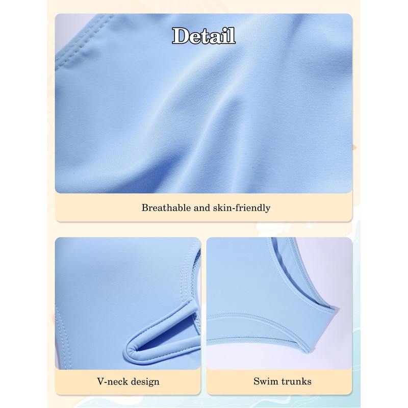 - Design: Cutout kids bathing suits girls top with v-neck design with double straps, removable padding to protect girl's privacy, let every girl show her unique style. The solid color swim trunks are designed with drawstring tie waist and high waist, more comfortable to wear