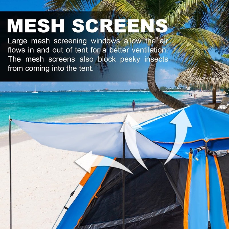【Strong & Durable】The Windows and Door equipped with high quality zippers can be closed tightly, which provide stronger resistance to harsh weather. Sturdy fiberglass poles combined with a wind stable construction to ensure stability.