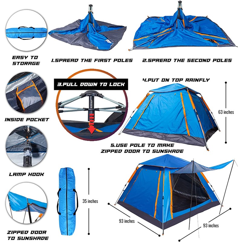 GlareWheel Instant Pop Up Tent 5 Person Blue