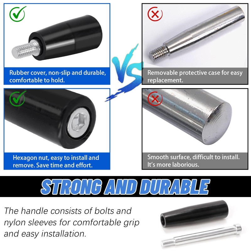 - ♛【Design】: The revolving knob handle male threaded stem rotates around the centre axis, making it intuitive and simple to use. It provides a firm and secure grip and is easy to carry and use wherever needed. This user-friendly design ensures no discomfort even after prolonged use. The handle is polished and deburred for smooth edges, ensuring a comfortable grip, reducing the risk of injury and fatigue during prolonged use.