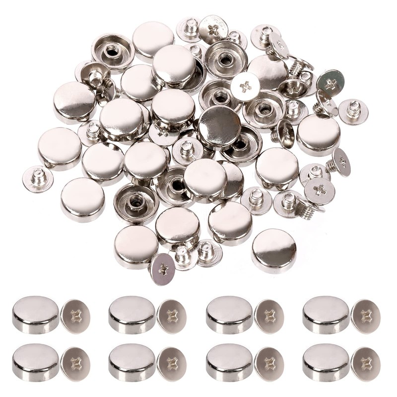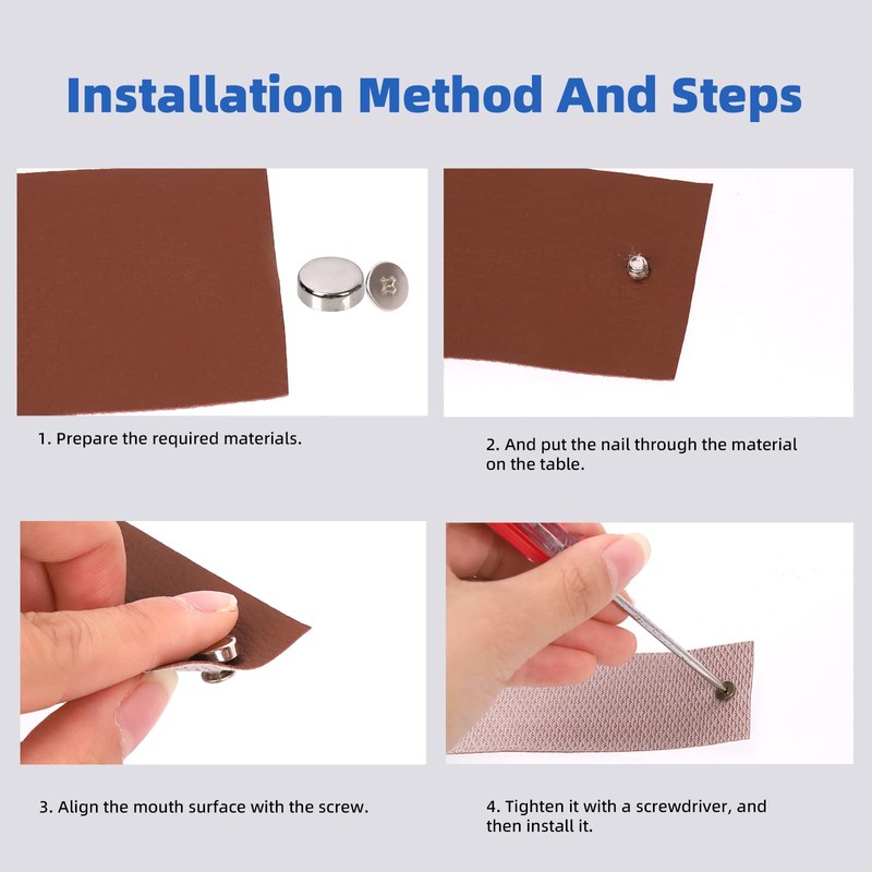 - ♕【Easy to Install】: The nailhead stud flat buckle button cap rivets are easy to install and can be directly connected to two products. First, just punch a hole in the place you want. Second, pass the screw through the back of leather. Third, tighten the head and screw together with a screwdriver. After connecting, using the fasten rivets can ensure that the two sides of leather remains tight and does not fall off.