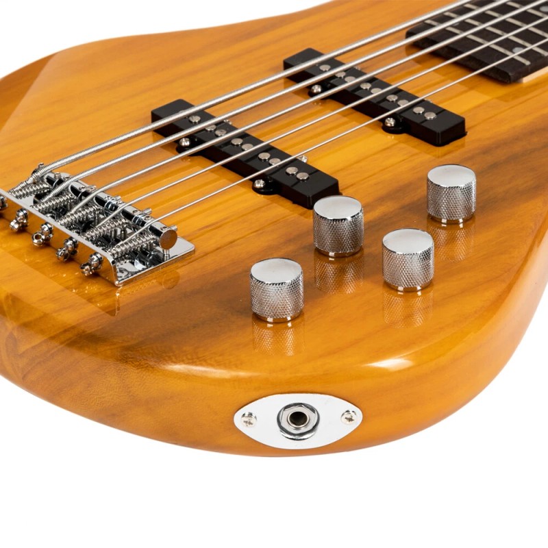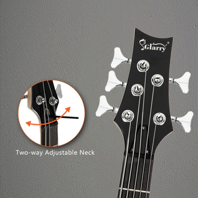 Glarry GIB Electric 5 Strings Bass Guitar Bag Strap Pick Transparent Yellow