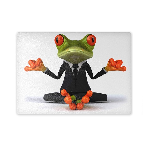 Glass Chopping Board 20 x 28 x 0.4 cm 3D Comic Frog Yoga with Suit and Tie 01