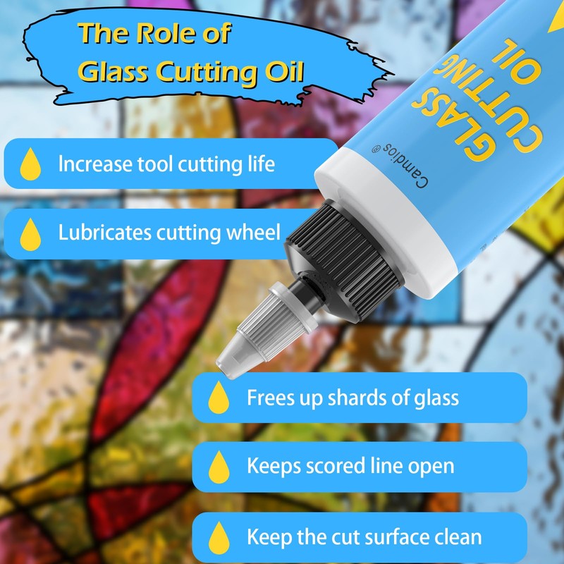 - EASY TO USE; The package include 4oz glass cutting oil with precision application top and oil dropper. The glass cutting oil is suitable for different glass types, including mosaic, tiles, mirror, stained glass and so on. Premium lubricant can make the cutting surface of glass smoother.