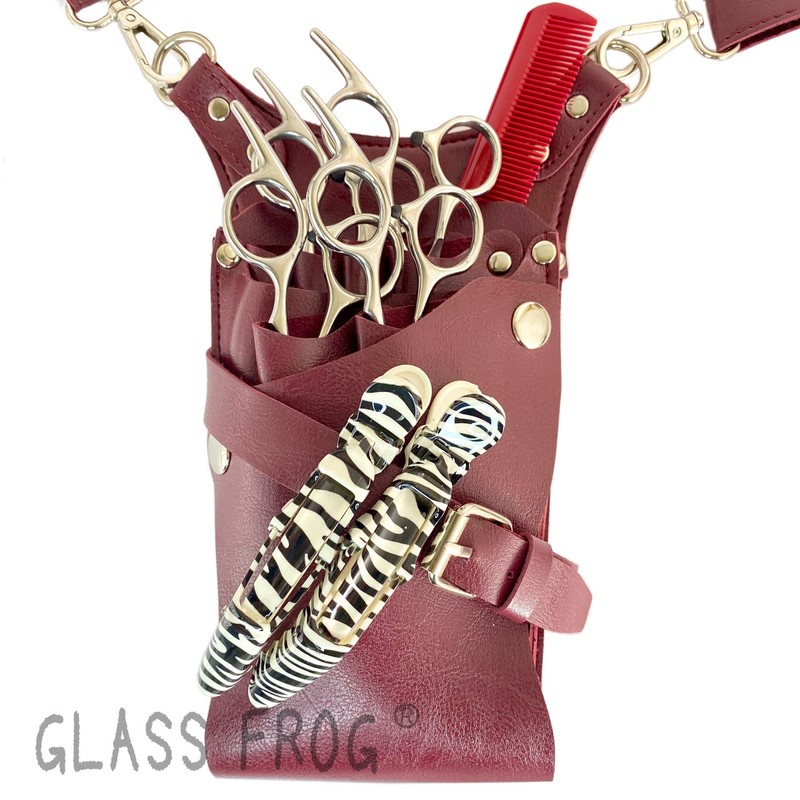 GLASS FROG Scissor Case, 6 Inserts, PU Leather, Storage Capacity and Lightweight (Bordeaux)