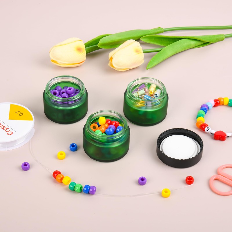 Glass Jars with Lids,Eco-Friendly Cosmetic Containers with Airtight Black Lids & Liners, Multi-Color Options for Cream, Lotion, Body Butter, DIY Skincare Travel Jars (Green Frosted, 1oz)