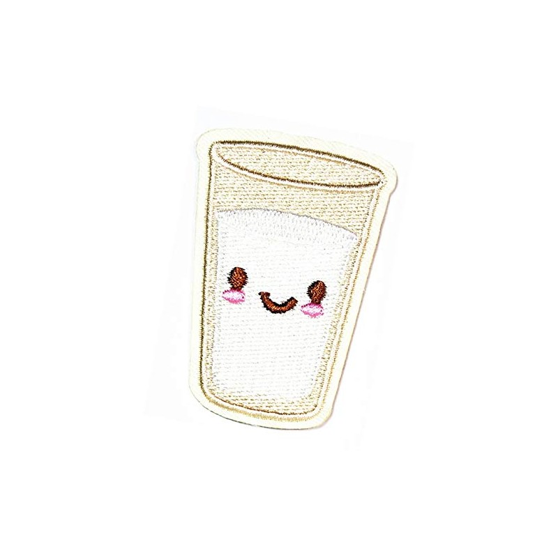 Glass of Cow Milk Patch Food Applique Embroidered Sew Iron on Patch Ice Cream Drink Coffee Cookie Sushi Hamburger Pizza Food Cooking Chef Kid Cartoon Patch for Clothing (25)