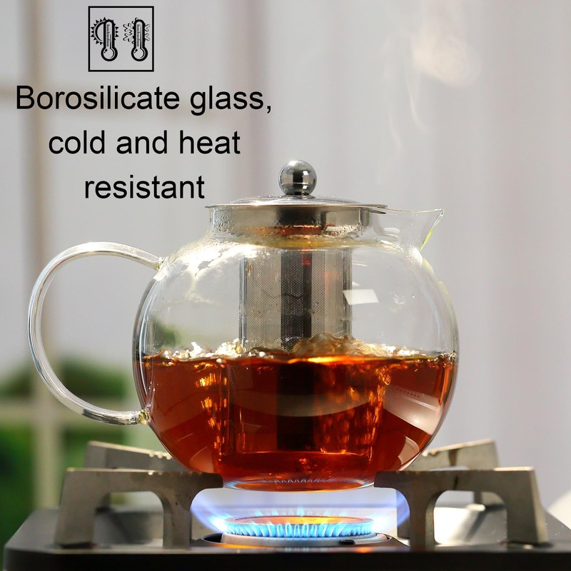 - 【TEAPOT FOR STOVETOP】Glass tea pot Lead-free Borosilicate Glass Teapot, Stovetop-Safe, Microwave-Safe,Loose leaf tea kettle. Steeping teapot.Withstands temperatures from -20°C to 150°C,Can be heated with stovetop
