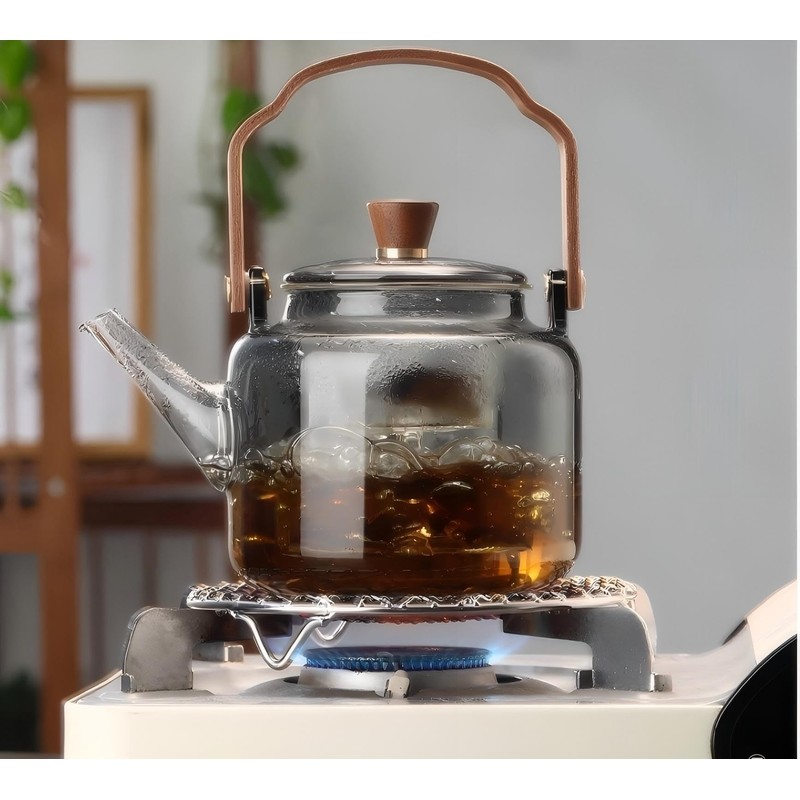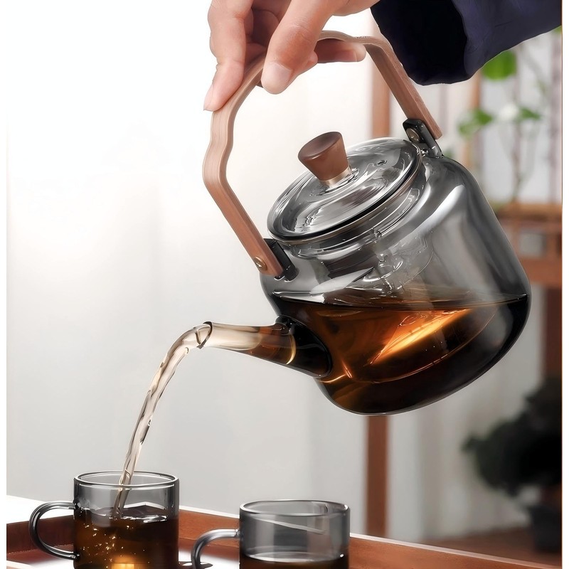 1.Keep the wooden handle upright when using a glass teapot on a gas stove.