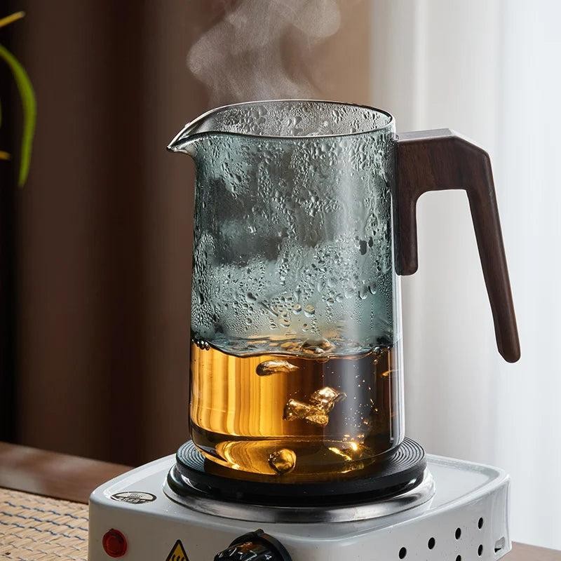 Introducing our Glass Teapot With Wood Handle, the perfect blend of elegance and functionality for tea lovers: