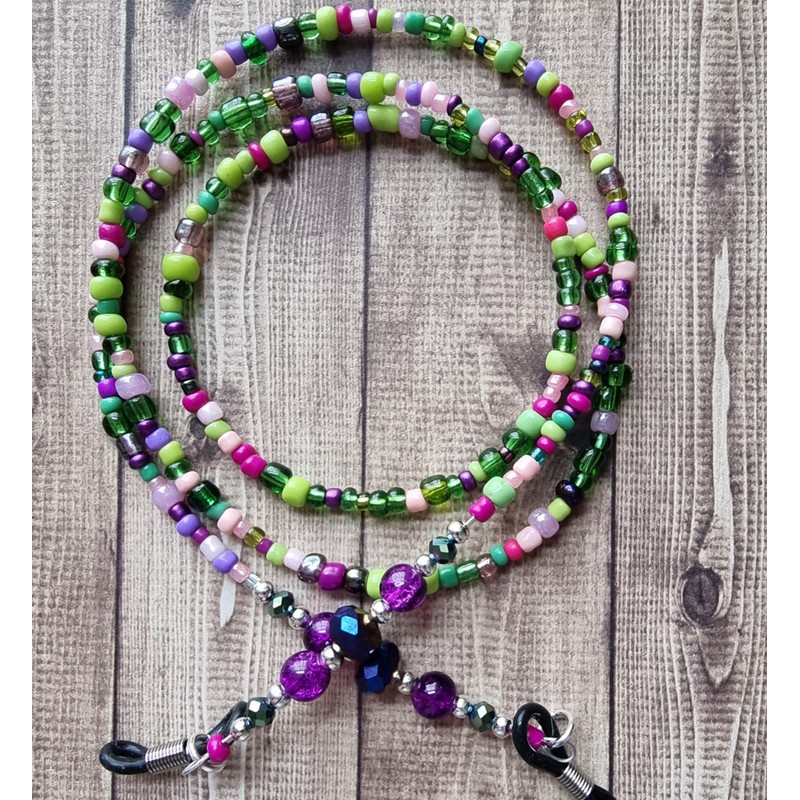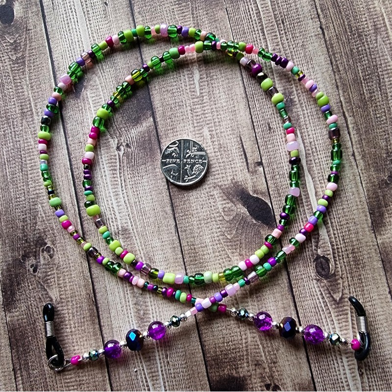 Glasses Chain - Beaded Spectacle Cord - Purple Pink Green Strap - 30 inches