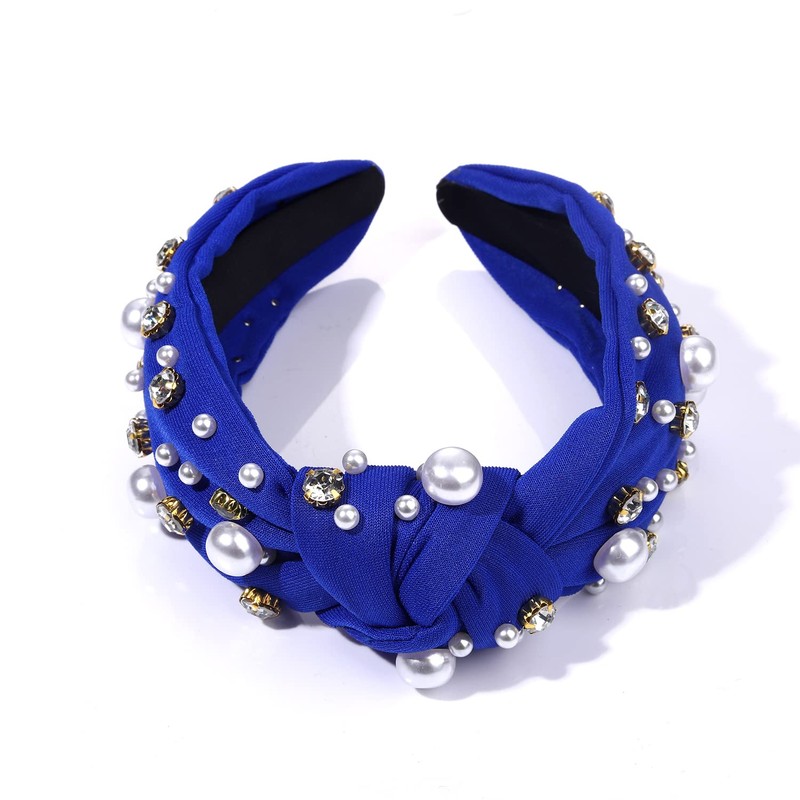 GLBCC Pearl Headband Sparkly Rhinestone Pearls Knot Hairband Wide Knotted Headband Headpiece Spring Summer Pink Black Headbands Headwear Accessories (Royal blue knot hairband)