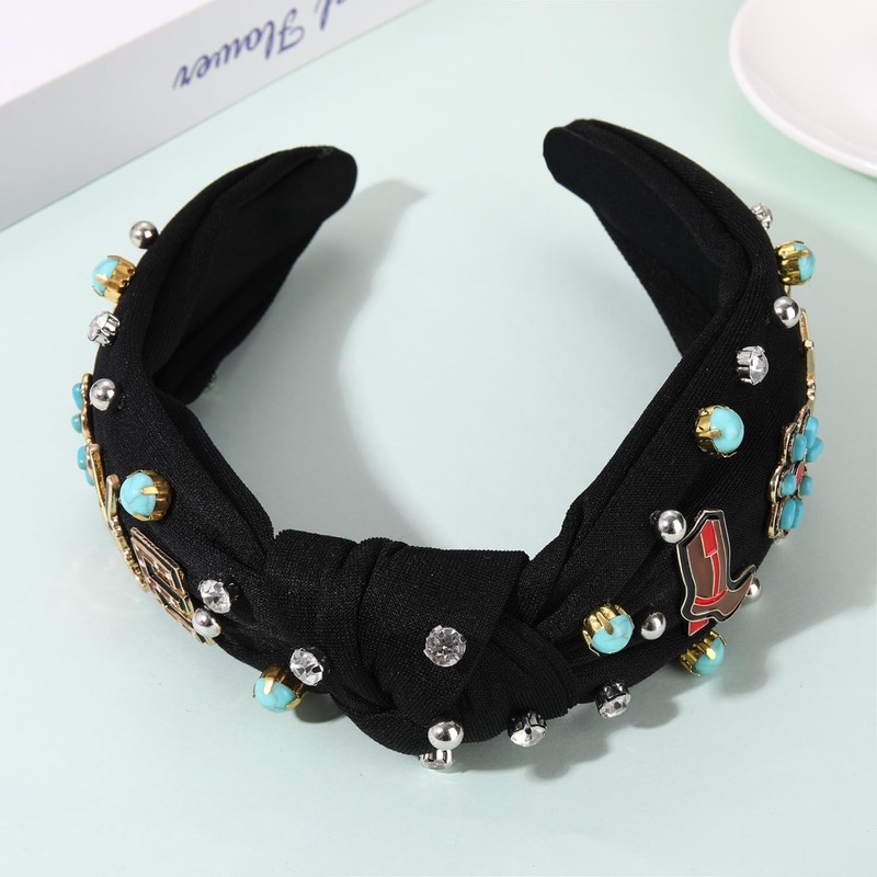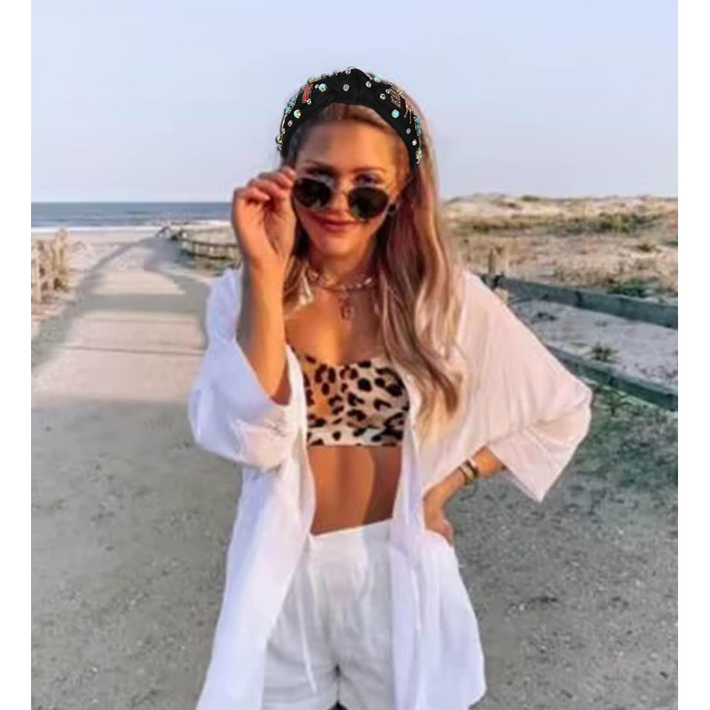 GLBCC Western Knotted Headband Southern Country Cowgirl Turquoise Beaded Wide Knot Headband Nash Rodeo Head Band Hair Accessories