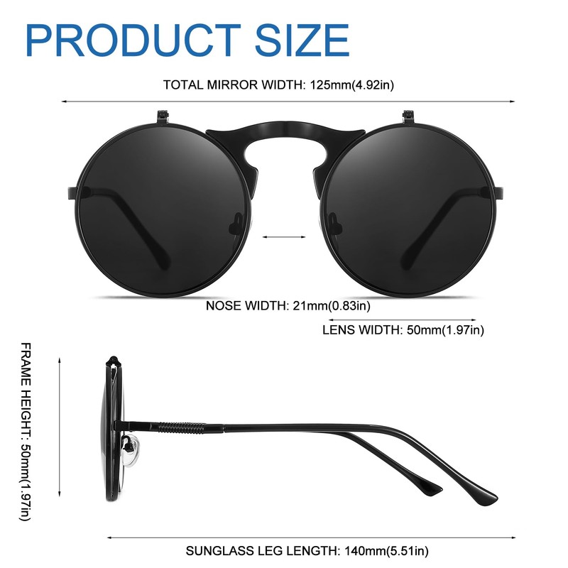 - Wide Application: The round flip-up sunglasses are versatile and can be used as a great gift for various occasions. Whether you're driving, skiing, fishing, shopping, halloween,or traveling, embrace the charm of these vintage steampunk sunglasses.