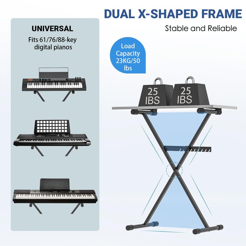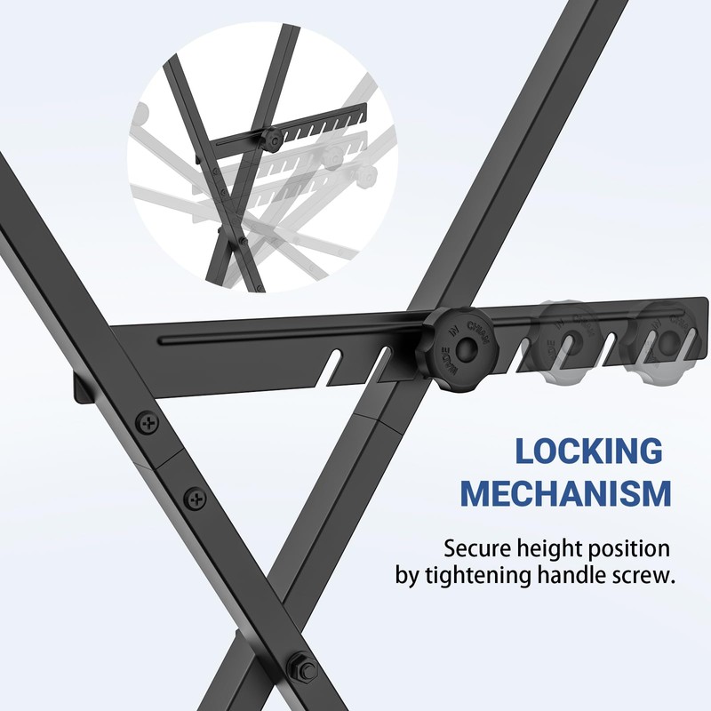 - Single-x metal construction ensures stability for heavy and light keyboards.