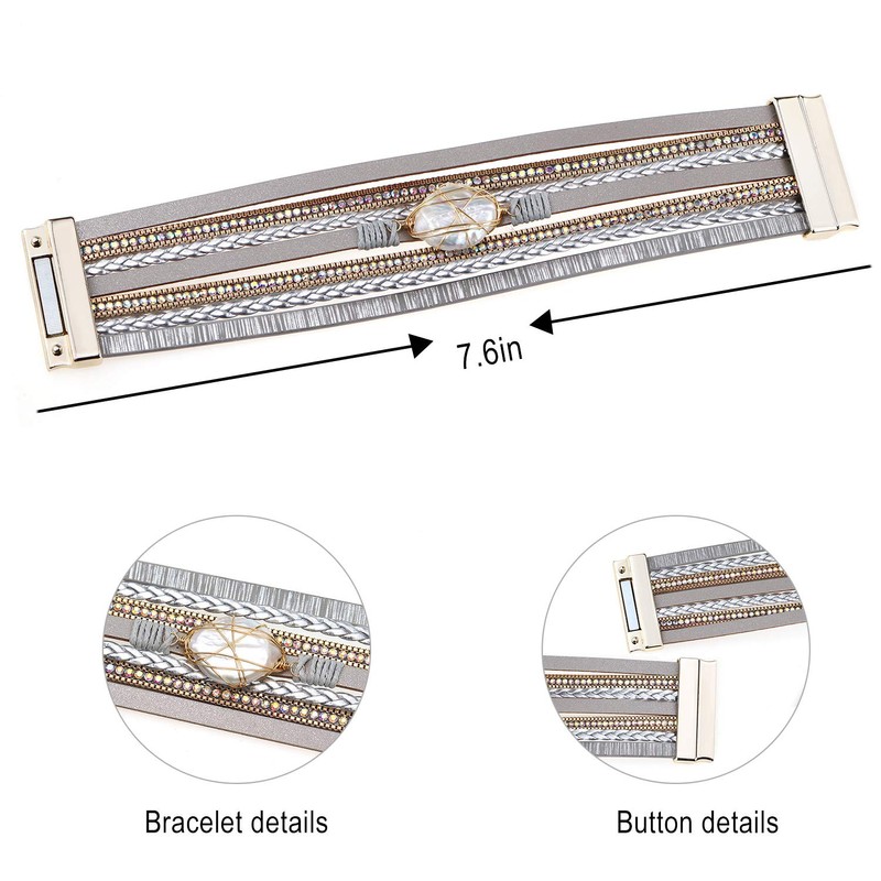 - Material: Excellent multilayer bangles are made up of leather material.